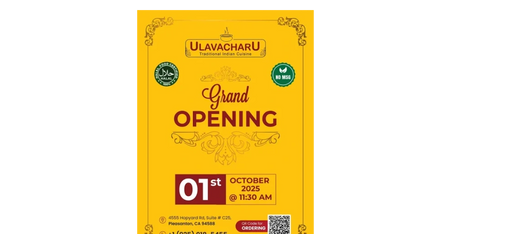 We’re delighted to share that UlavacharU Indian Cuisine will be opening its doors in Tri-Valley on October 1st at 4555 Hopyard Rd, Pleasanton, CA. 🎉